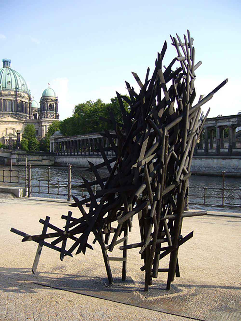 Die Zaunsegmente von Friedung sind von ihrer flächenhaften Ausdehnung zu einer Art Turm geschichtet oder aufgeworfen. Einige Elemente weisen noch ihre ursprüngliche wabenartige Struktur auf, andere weiter aufwärts in diesem Schlamassel platzen aus dieser Ordnung.